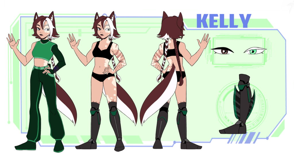 Келі на перший погляд була схожа на людину. Але лише на перший. Вона мала вуха й хвіст, що нагадували вовчі. На лівій половині тіла виднілися світліші плями шкіри, волосся з цього боку було білим, як і вії та брови. Одне око — світло-зелене, інше — темно-коричневе. Усі ці деталі підкреслювали, що вона не людина.