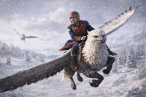 Гіпогриф різко загальмував, здійнявши хмару снігу. Він роздратовано фиркнув, дряпаючи лапами землю, а його лютий крик луною розійшовся лісом.