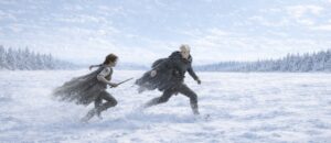Коли найпрудкіший гіпогриф рвонув за ними, Драко й Герміона вже стрибнули в хащі хвойного лісу й зникли в темряві між дерев.