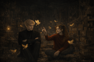 Герміона глянула на нього й раптом спіймала себе на думці, що їй справді цікаво, про що він думає. Його погляд зустрівся з її — і вона не відвела очей. Уже не боялася, що він помітить, що прочитає щось зайве. Це здавалося дивним… і водночас напрочуд природним.